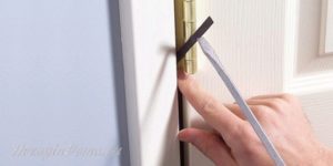 В этом случае нужно взять монтировку и снять полотно, после чего демонтировать крепления, а в образовавшиеся пустоты вбить деревянные колышки, смазанные клеем ПВА. Спустя 24 часа необходимо вернуть дверные петли на прежнее место. Но для вкручивания используйте более длинные шурупы, чем предыдущие, и ввинтите их по максимуму до основания. Повесьте полотно на петли и выровняйте по уровню. Если причина устранена, значит, вы все сделали правильно.