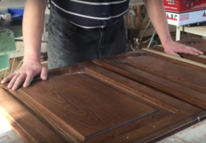 Например, если отошла внешняя отделка, придется посадить шпон на клей. Клеящий состав подбирается в зависимости от температурного режима в комнате и древесины, из которой изготовлена деталь кухонной мебели.
